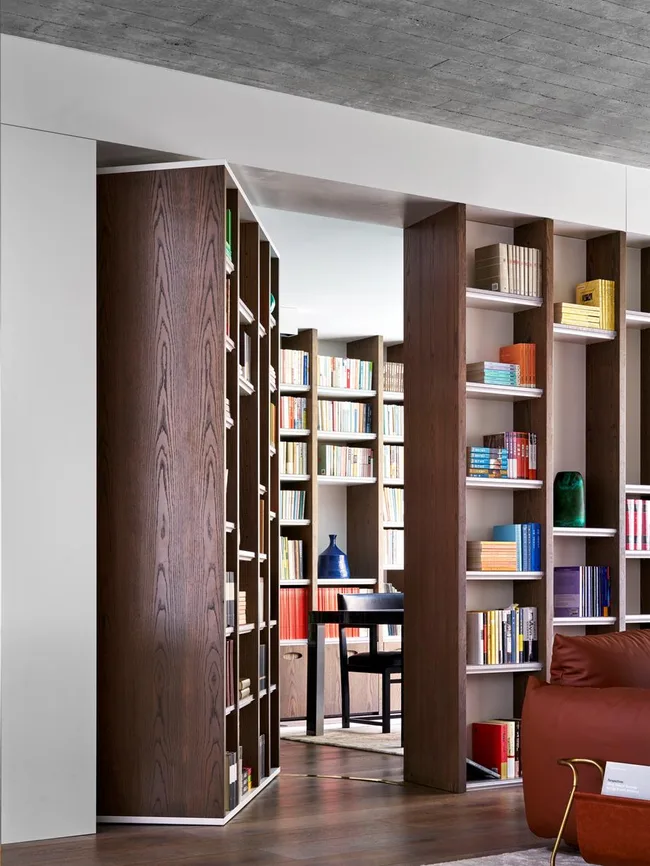 Architect Luigi Rosselli calls this the ‘Anne Frank’ bookcase as the pivoting door conceals the owner’s study, providing a quiet, tranquil space in this epic stacked house he designed on Sydney’s coastline.