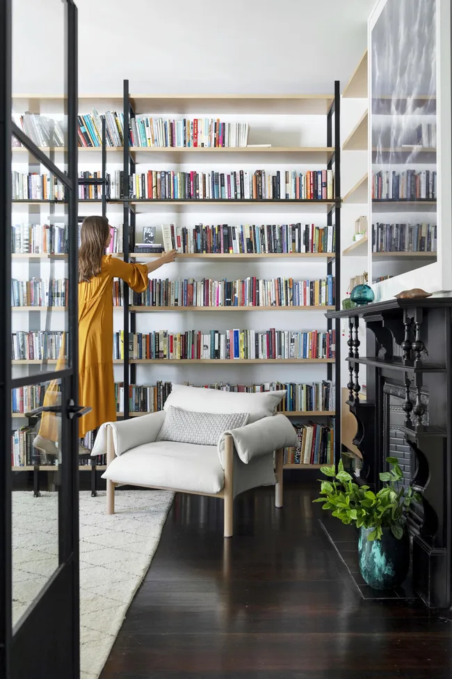 “My lifelong ambition was having floor-to-ceiling bookshelves with a sliding ladder, so it’s nice to have achieved this!” says author Alice Nelson, the owner of this renovated home in Perth.